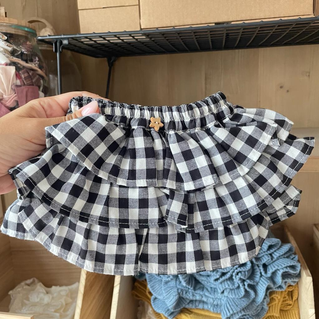 Culotte volantes vichy negro con estampado de cuadritos en color blanco crema y negro. Confeccionada con goma en cintura y muslos y volantes en cintura y braguita del mismo tejido. Esta prenda está forrada. Un básico ideal para lucir esta nueva temporada.