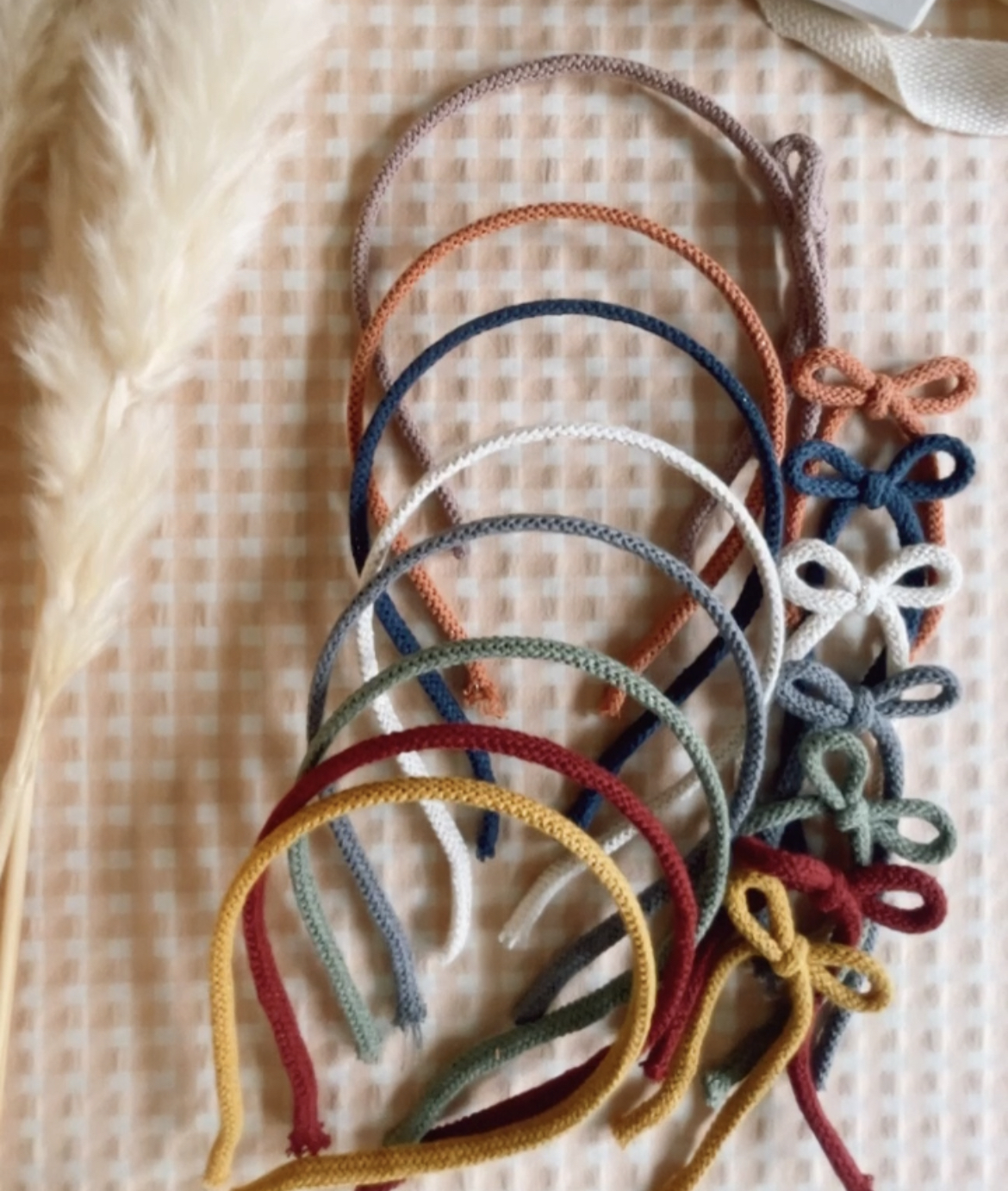 Nuestra diadema de cordón con lazada puedes encontrarla en los siguientes colores: Matcha, Teja, Denim, Plata, Eucalipto, Golden, Salmón, Lava, Cobre, Rubí, Mauve, Aguacate y Mostaza.