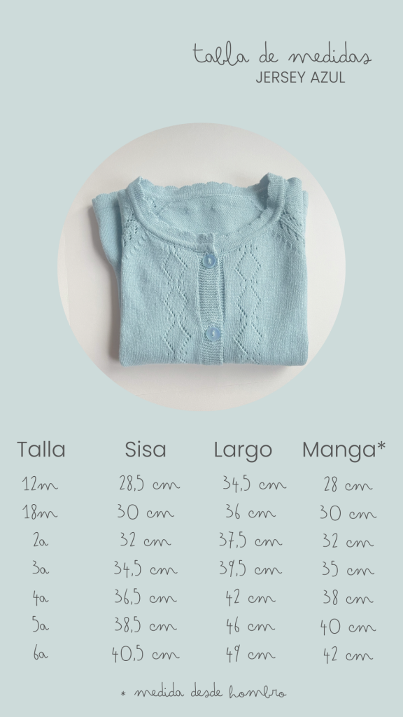 Si quieres ver cómo combinamos las prendas que tenemos a la venta puedes seguirnos en Instagram, haciendo click AQUÍ. Esperemos que la tabla de medidas de la prenda te saque de dudas a la hora de elegir talla para tu peque.
