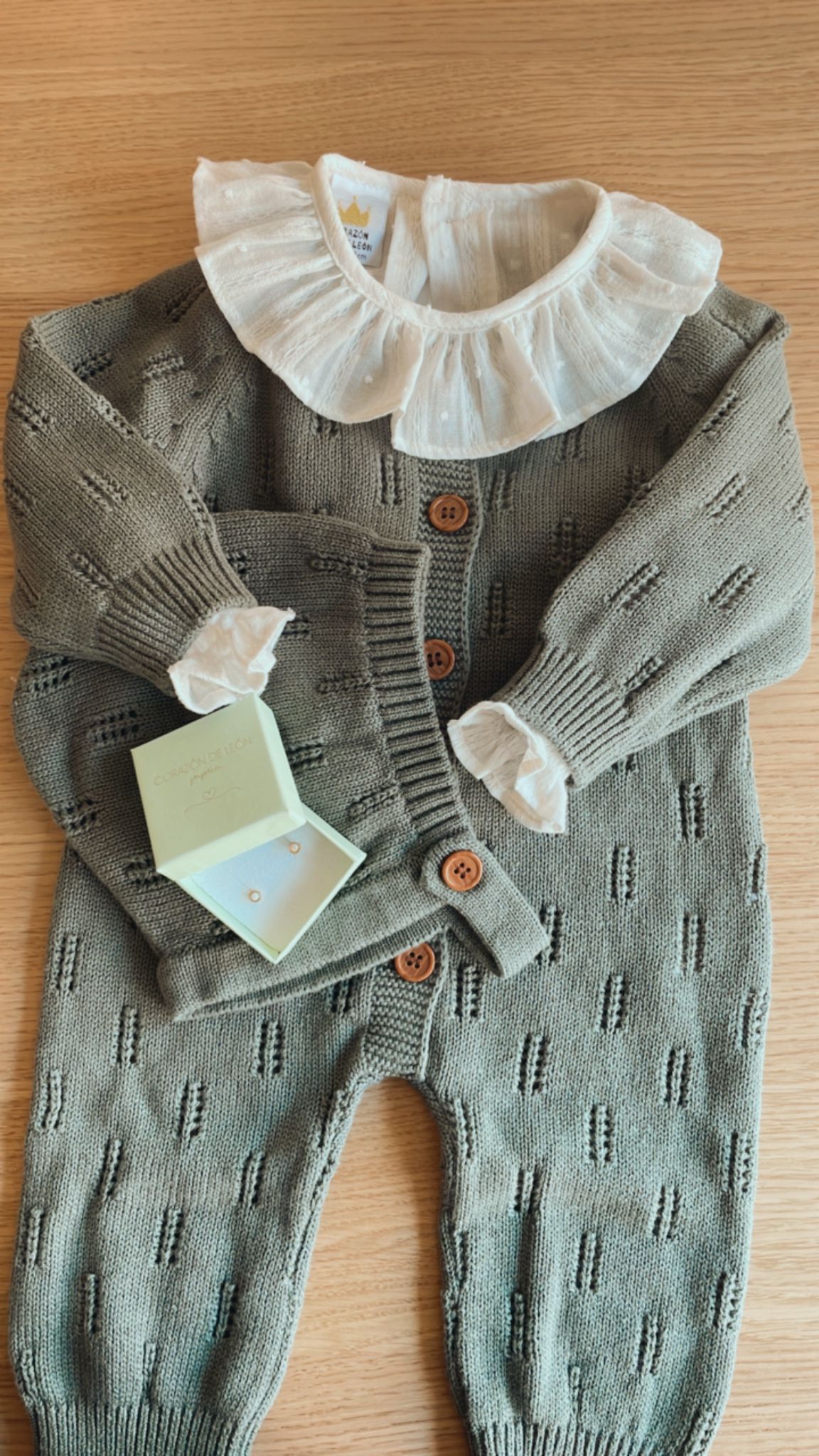 Pelele de punto verde botella