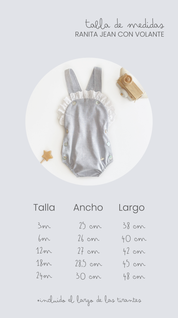 Si quieres ver cómo combinamos las prendas que tenemos a la venta puedes seguirnos en Instagram, haciendo click AQUÍ. Esperemos que la tabla de medidas de la prenda te saque de dudas a la hora de elegir talla para tu peque.